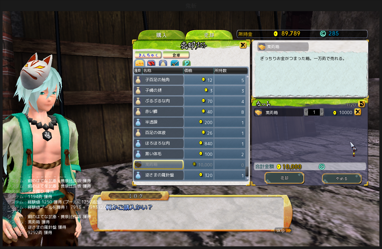 そんな武器を仏が持ちたい!といいだしたので、鬼神殿にほりにいくことになりました。耐久度、SP消費が大きく、CTは長い、射程は短い、失敗しやすい、とかなり扱いにくい。